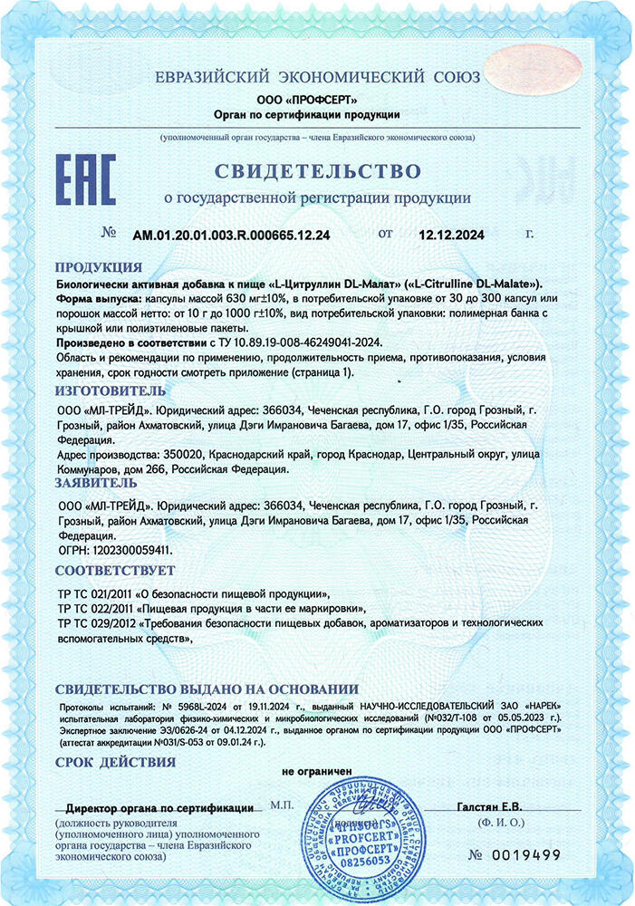 L-цитруллин; DL-малат (яблочная кислота)